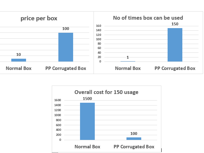 The reusable box helps meet cost-cutting goals by paying for itself in as little as 10 uses, compared with cardboard. It reduces costs associated with breaking down, erecting, storing and disposing of cardboard. In addition, our testing confirms corrugated plastic containers can last many years, depending on the application. This is a vast improvement over cardboard, which typically last a month or less – helping companies achieve sustainability objectives.